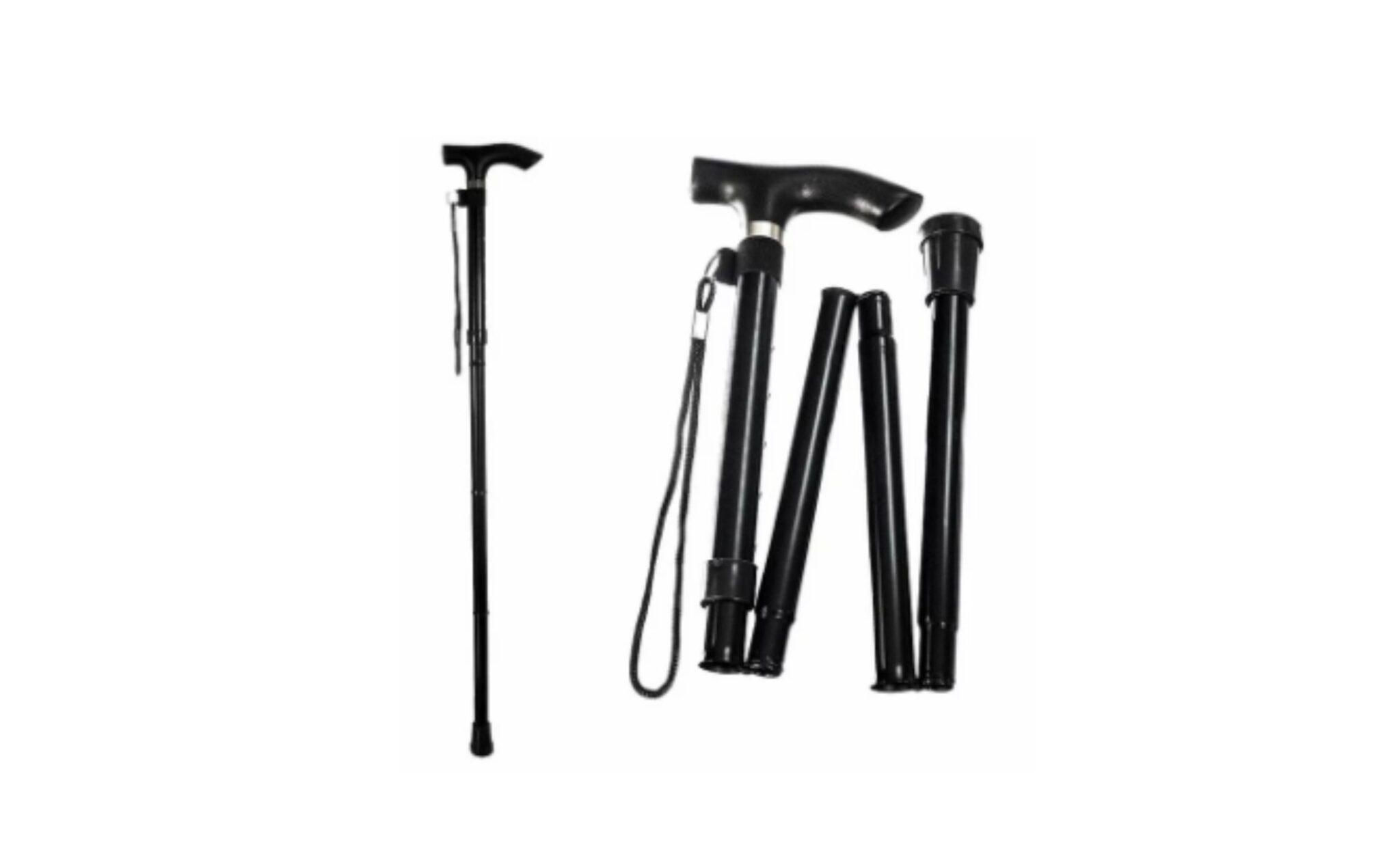 A foldable walking stick which makes it easy to pack away and uses up less space.